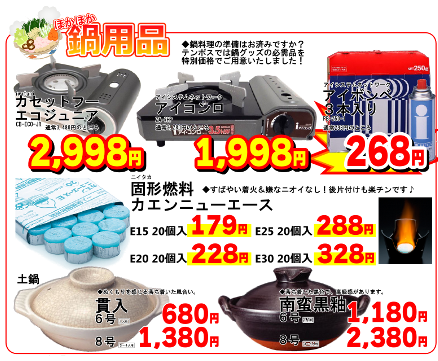 これからのさむ~い時期の必需品、鍋用品を始めとし
