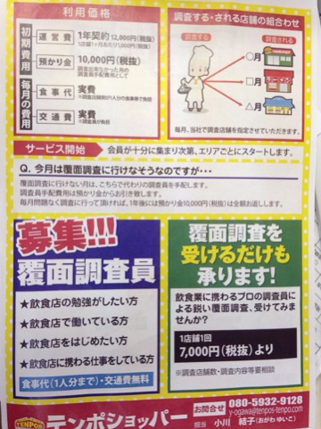 年間契約で、月に一度、覆面調査に「行け」ます!!