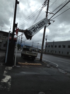 ちなみに台風の日、小倉店の目の前の看板の様子がこちら