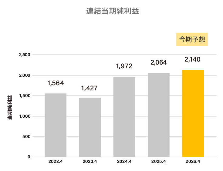 | 親会社株主に帰属する当期純利益 | 1,010 | 960 | 199 | 1,564 | 1,427 | 1,972 | 2,064 | 2,140 |