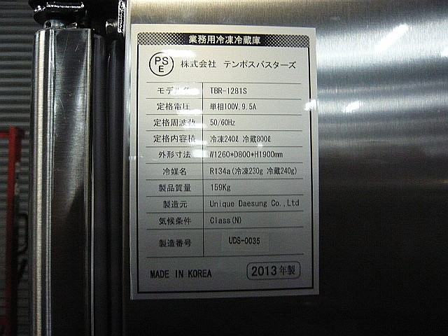 テンポスオリジナル 縦型冷凍冷蔵庫(1凍・3蔵)