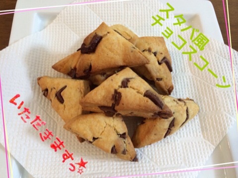 作り方もホットケーキMIXとバターをへらなどですり混ぜてそぼろ状になった所に一かけを1/4にしたチョコと牛乳を入れて、一まとめにしたら2cmくらいの厚さに伸ばして食べやすい大きさにカットして190度のオーブンで15分焼くだけ!