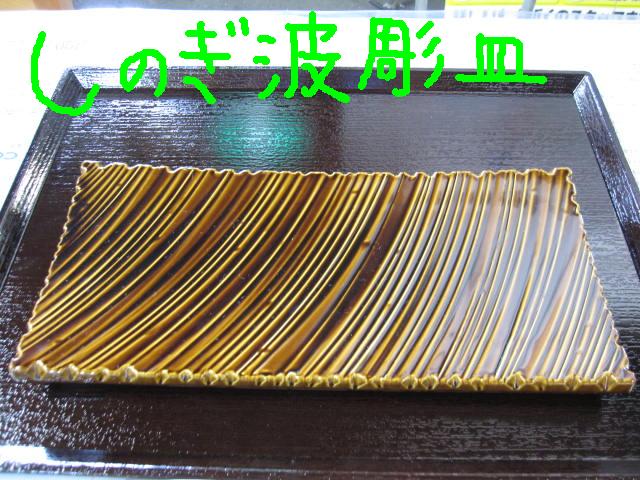 ★しのぎ波彫皿 中 27cm アメ釉塗