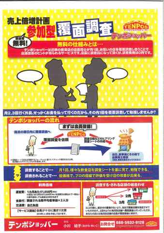 月2、3回行く外食の内1回を覆面調査して勉強しませんか!?