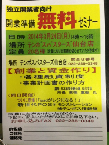 ところでテンポスでは、3月24日(月)に開業準備無料セミナーを実施します。