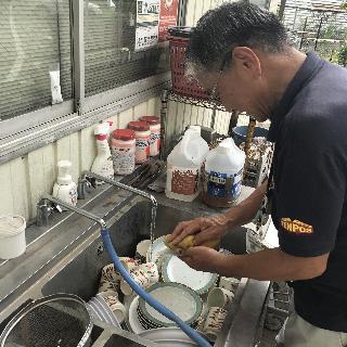 買取した陶器や調理道具を主に洗い、綺麗に再生してくれる一宮店の橋本 宇市さん