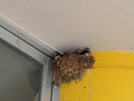 この巣の上部を継ぎ足したのですが、子つばめが大きく成り過ぎて