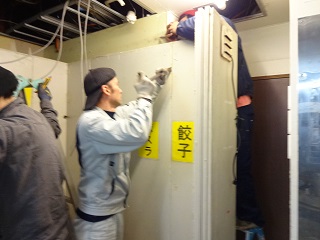 内装、水道、電気、フード、厨房機器業者みんなで協力して