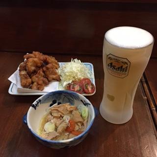 さくらさんの唐揚げとビール。メッチャウマ!!ずーっと飲んでられます。