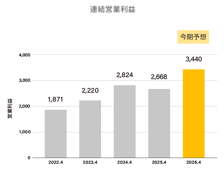 | 営業利益 | 1,953 | 1,722 | 982 | 1,871 | 2,220 | 2,824 | 2,668 | 3,440 |