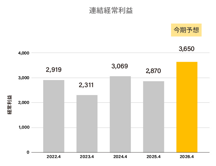 | 経営利益 | 2,091 | 1,903 | 1,448 | 2,919 | 2,311 | 3,069 | 2,870 | 3,650 |